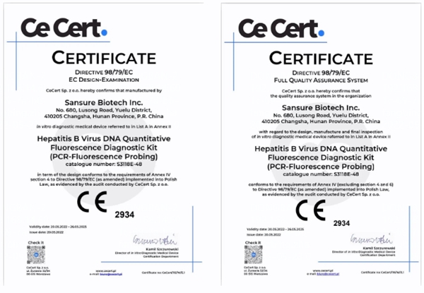 5月20日,BB贝博艾弗森生物自主研发的乙型肝炎病毒核酸检测试剂盒(PCR-荧光法)、丙型肝炎病毒核酸检测试剂盒(PCR-荧光法)和人类免疫缺陷病毒1型核酸测定试剂盒(PCR-荧光探针法)成功通过欧盟公告机构认证(CE IVDD List A),成为中国第一家核酸检测试剂荣获欧盟CE最高认证的企业。
