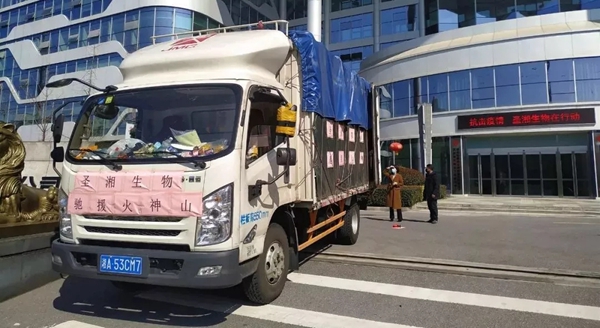 装载应急物资的运送车发往武汉火神山医院